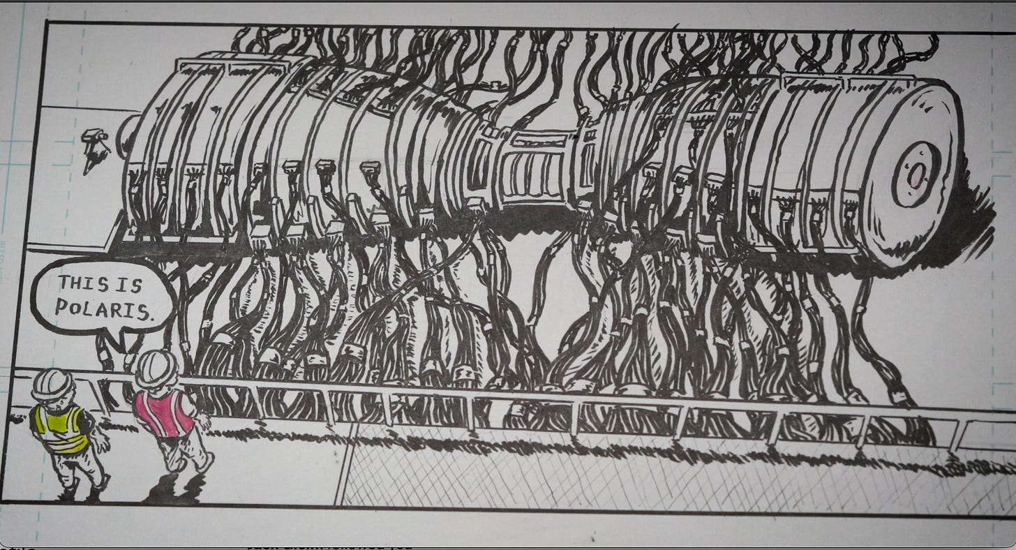 Polaris is extraordinary. It’s an hourglass-shaped machine connected to a shit-ton of cables, which then connect to a shit-ton of capacitors.