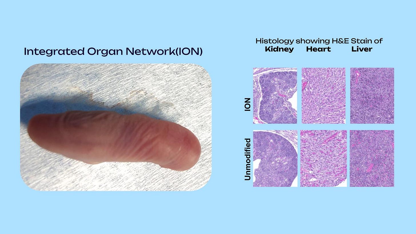 While Kind must currently grow the organs in the womb of an animal, there are futures where similar functions could take place inside of artificial wombs. We wrote earlier this year about Becoming Bio, which has developed an artificial placenta. Over the last couple of years, scientists have also made huge strides in the perfusion systems that keep organs functioning outside of the body. Bexorg does this with brains. And Science Corp. recently unveiled a whole perfusion product line.